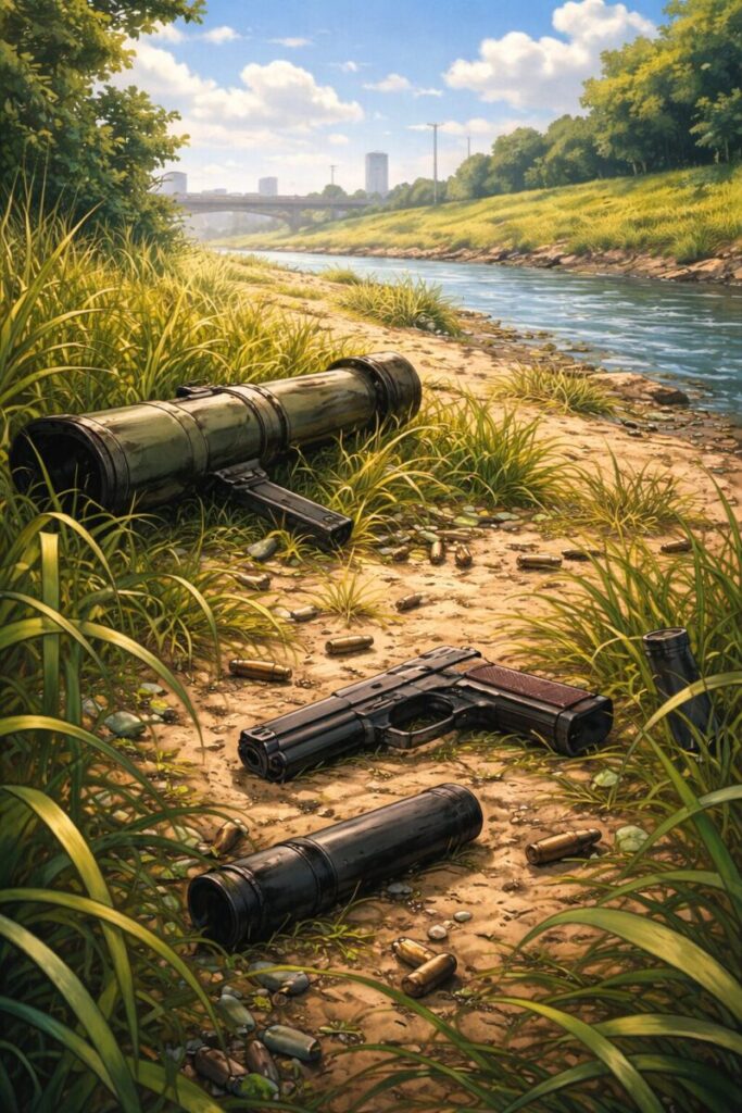 現実に北九州でも 2024年5月に福岡県北九州市小倉南区の河川敷から複数のロケットランチャーや拳銃のようなもの 手榴弾のようなものが発見されました。